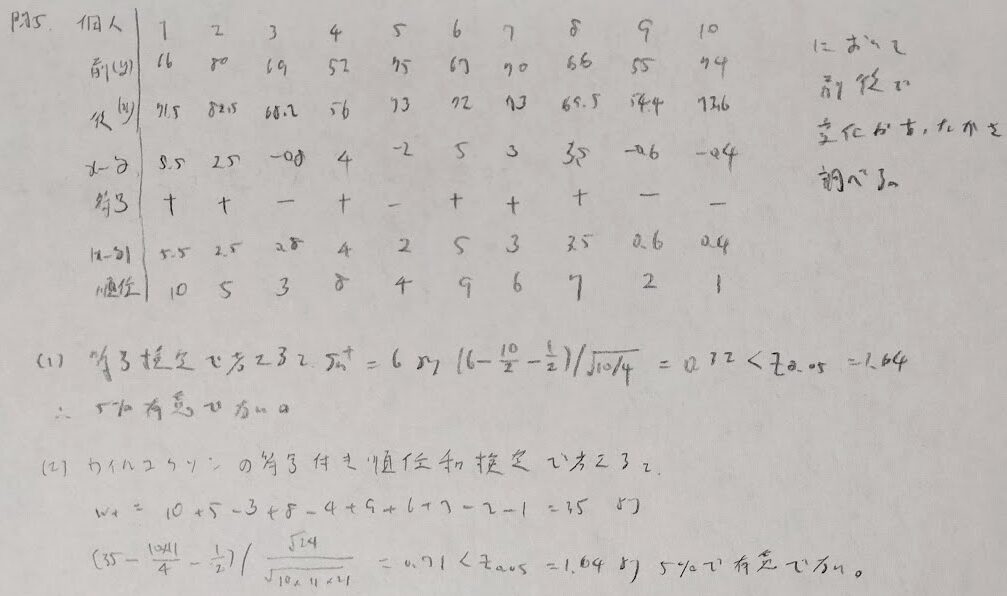 問5:符号検定とウィルコクソンの符号付き順位和検定