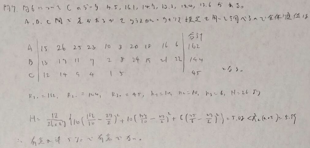 問7:クラスカル・ウォリス検定