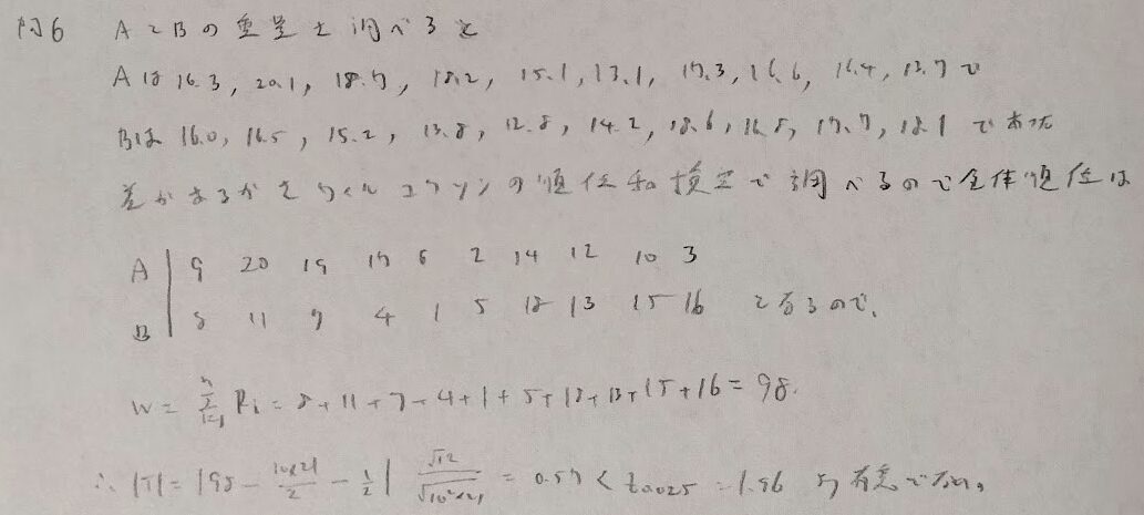 問6:ウィルコクソンの順位和検定