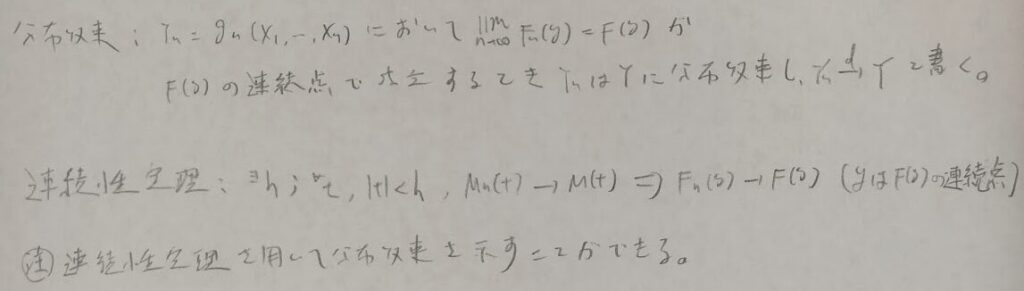 次に中心極限定理に移ります。分布間の話になるので分布収束を導入します。