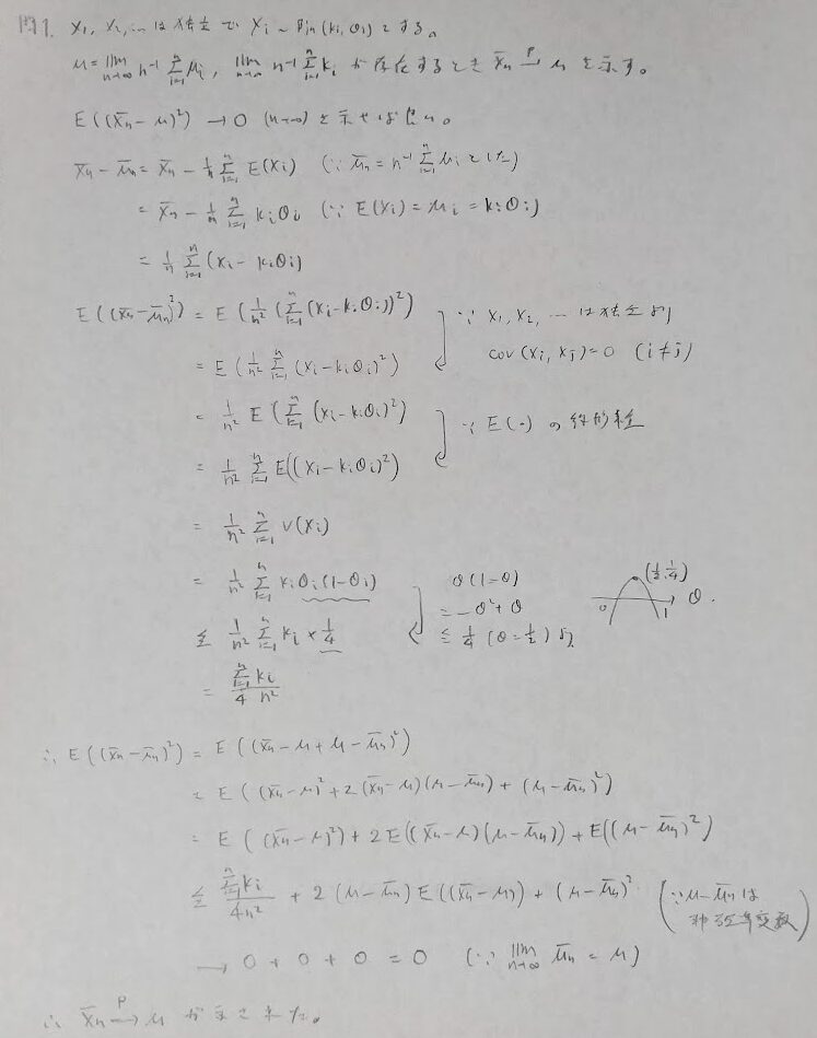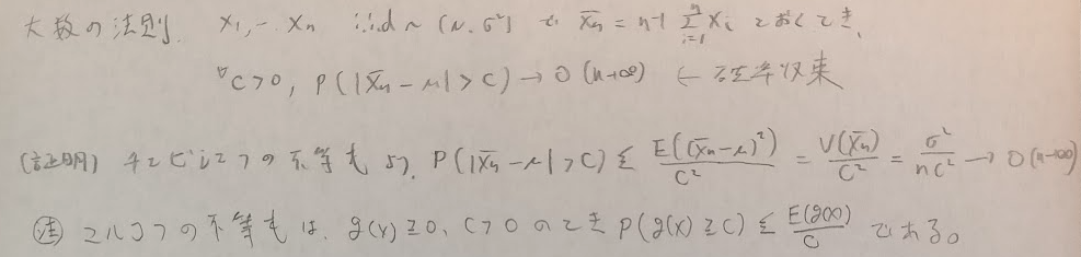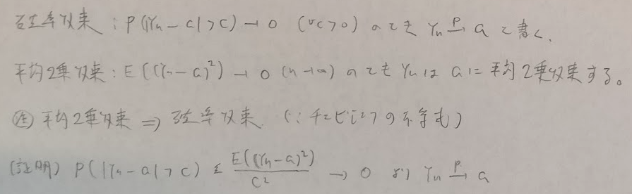 大数の法則は確率収束の考えに通じます。確率収束を示したい時は平均2乗収束を示せばOKです。もちろん照明も入れておきます。