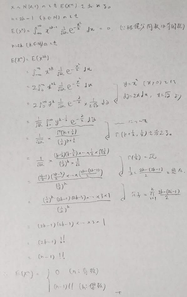 本問はいろんな観点から考えないと最後の答えまでいけないので、とても良い問題です。特に標準正規分布における高次モーメントの出し方がわからないと(覚えていないと)詰んでしまう問題なので、一般化をしてみました。