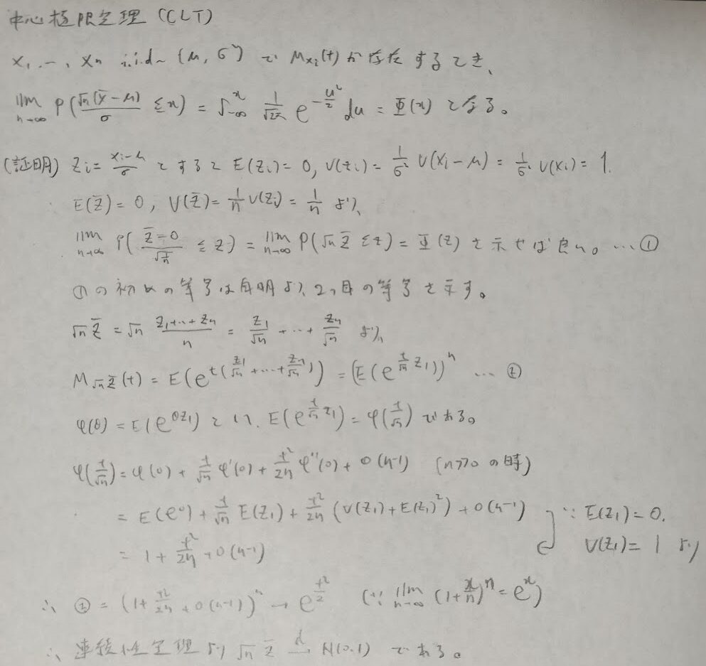 証明の核の部分はテイラー展開でした。またランダウのスモールオー記号も活躍します。次は実際の中心極限定理を証明します。これは後に行うデルタ法の仮定部分に相当する箇所になります。