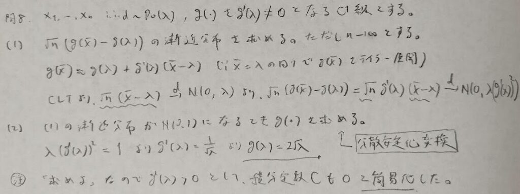分散安定化変換の問題は有名ですが統計検定1級では頻度が低いです。