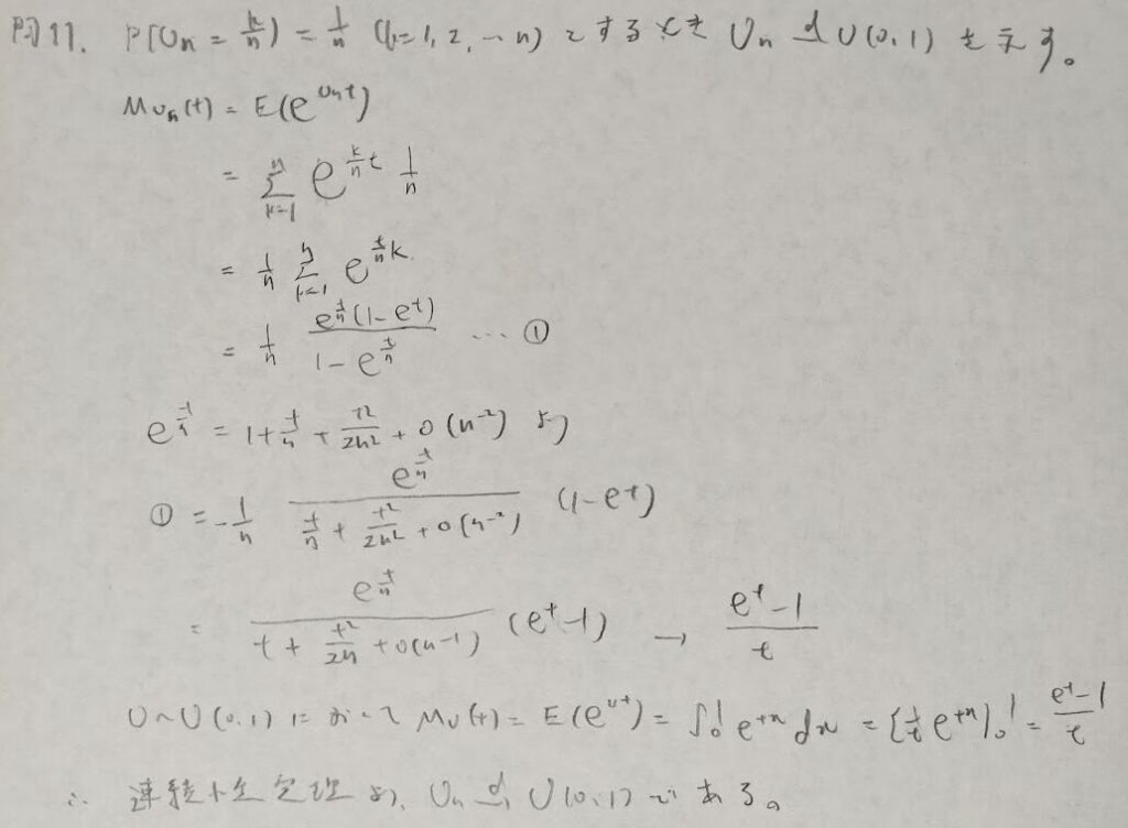 難問です。まず積率母関数の立式があまりみないタイプなので詰むポイントです。またテイラー展開を分母に適用する考え方も難しいです。指数関数系とロピタルの定理は相性が悪いです。素直にテイラー展開をお勧めします。