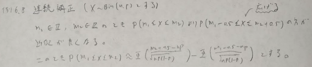 先ほどのポアソン分布の問題を一般化した感じです。次は実際に二項分布において中心極限定理を適用した場合に近似が良くなる方法である連続補正についてです。こちらはQC検定1級の方が深く突っ込んだ内容になっています。