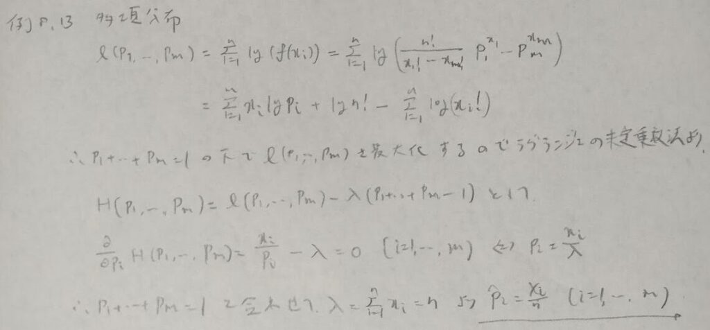 対数尤度の計算において変数xは大文字Xで記述した方が後のために良いです。後のためとはフィッシャー情報量を求める際に期待値を考えるためです。