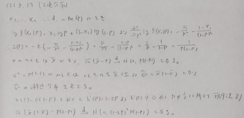 またスコア関数とフィッシャー情報量からさらに話は広がります。最尤推定量が持つ漸近正規性は非常に重要な性質です。またこれとデルタ法を合わせることによって更なる定理の拡張が可能になります。また次章のワルド検定の考え方の核となる部分で非常に大切です。