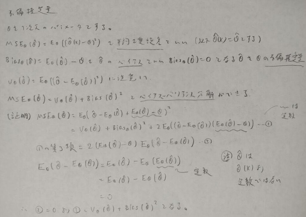 不偏推定量について学習します。バイアス・バリアンス分解まで一気に解説します。