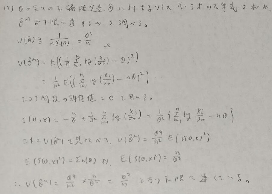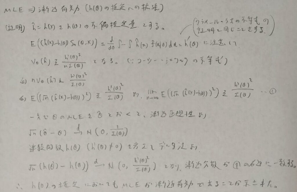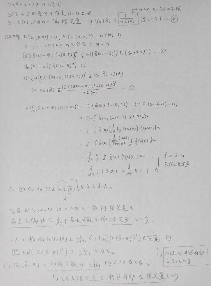 不偏推定量の周辺ではクラメール・ラオの不等式が重要です。ここでは漸近有効性という概念も登場します。