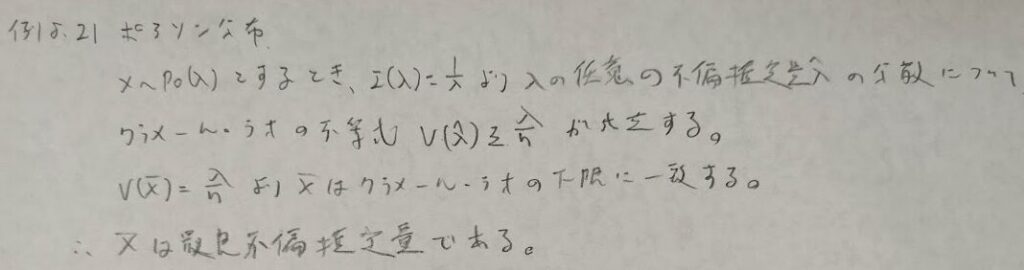 最良不偏推定量の例としてポアソン分布と正規分布をあげます。
