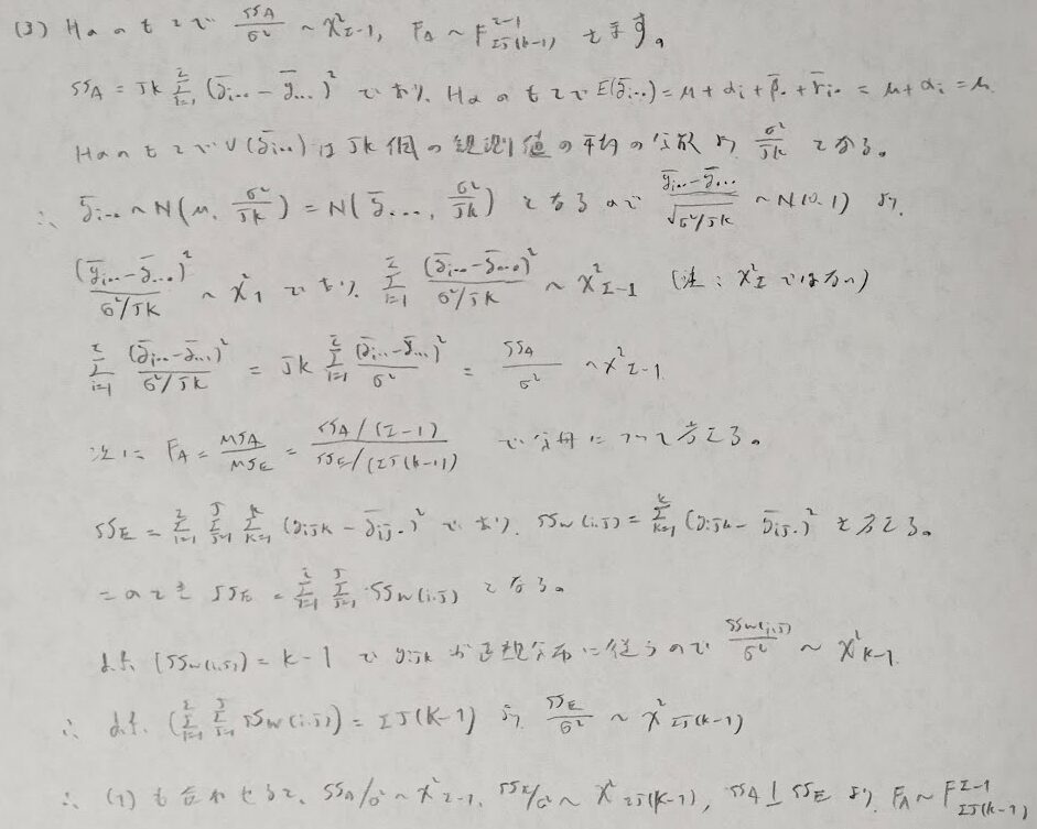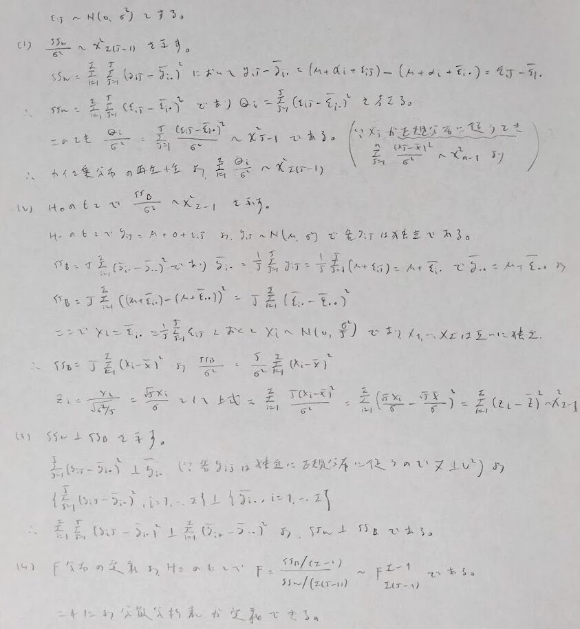それではこのFという統計量が予想通りのF分布に従う統計量であることを示します。