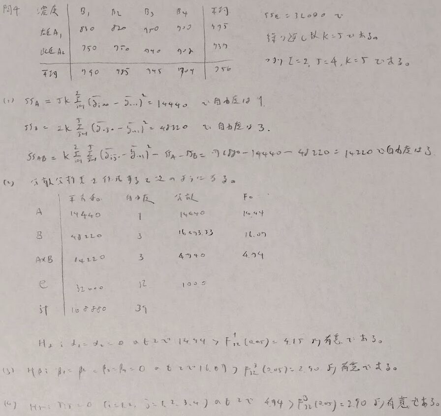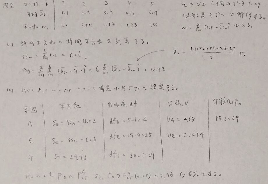 この問題など分散分析表を作れば芋づる式に問題が解けるようになっています。