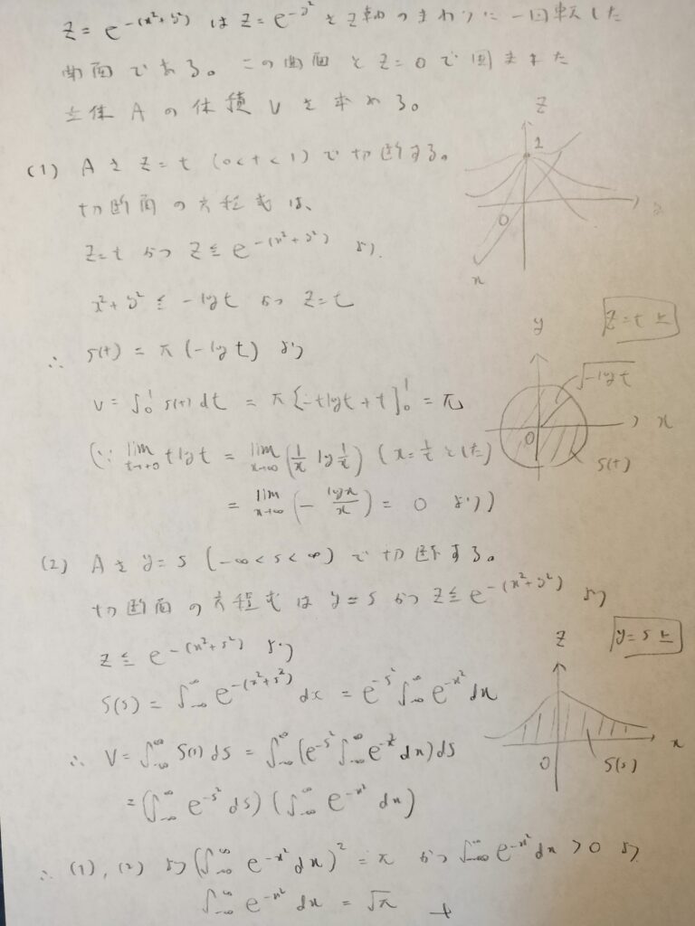 最後におまけとして本記事にて散々登場して既知として扱っているガウス積分について、高校生でもわかるような証明を掲載します。